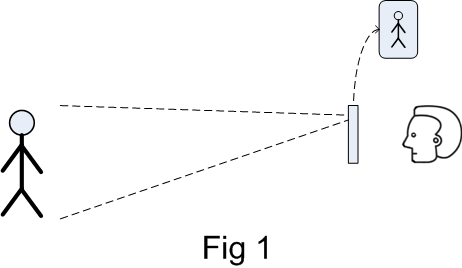Most modern mobile phones include a camera and a display. The image being recorded by the camera appears on the display on the front of the phone. The camera is usually rigidly mounted on the rear surface of the mobile phone. It can only record images along a line that is perpendicular to the rear surface of the phone; this is called the field of view. The photographer typically has to position the mobile phone so that the subject is in the field of view and that they can view the display, thus requiring them to hold the mobile phone in front of their face. Such a pose is often uncomfortable, looks awkward and makes it obvious to bystanders that the photographer is recording the scene.