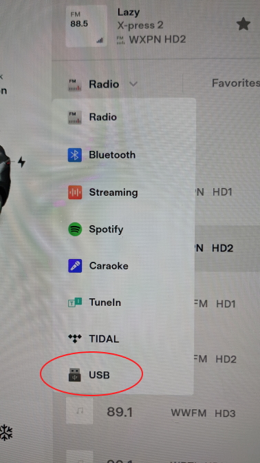 · Select USB on the Tesla music console. You should see the music files.