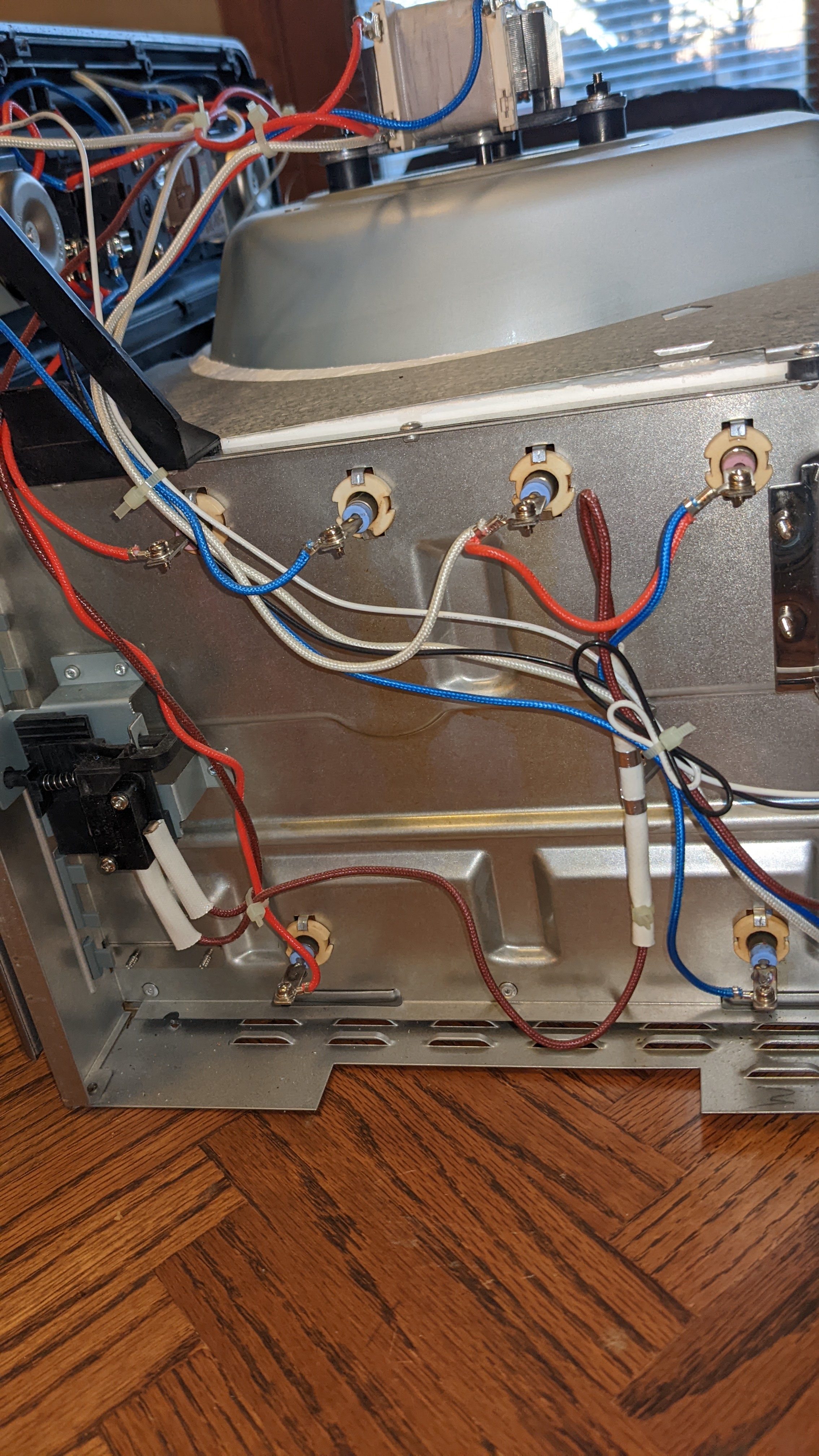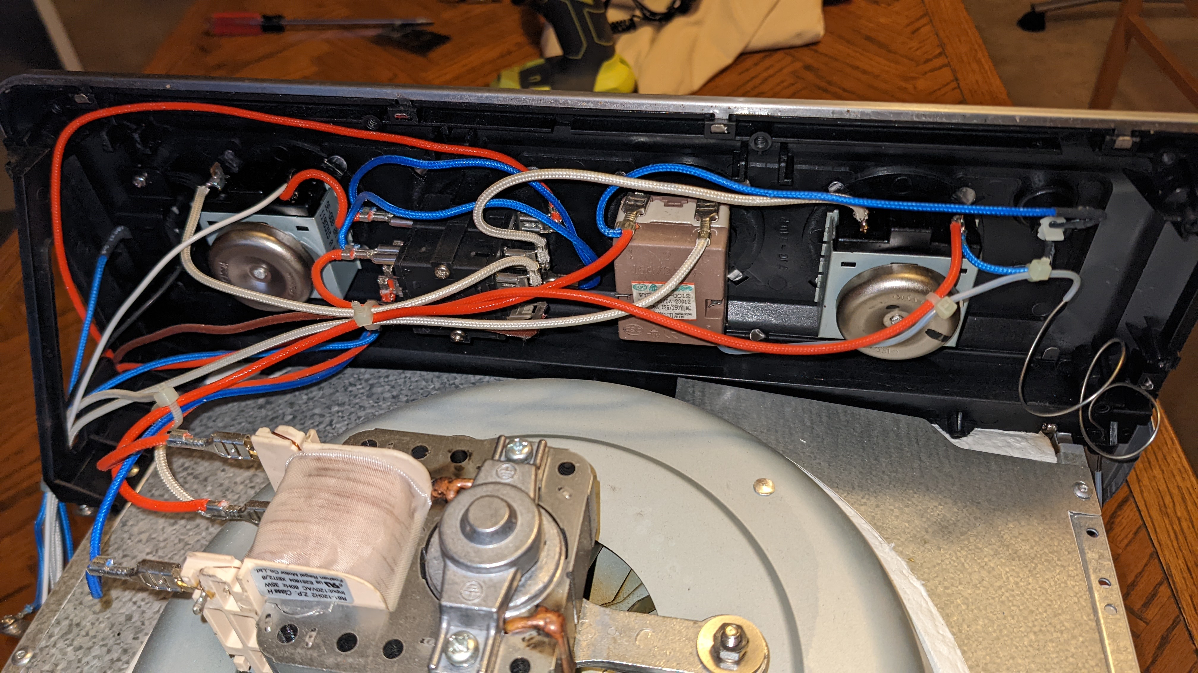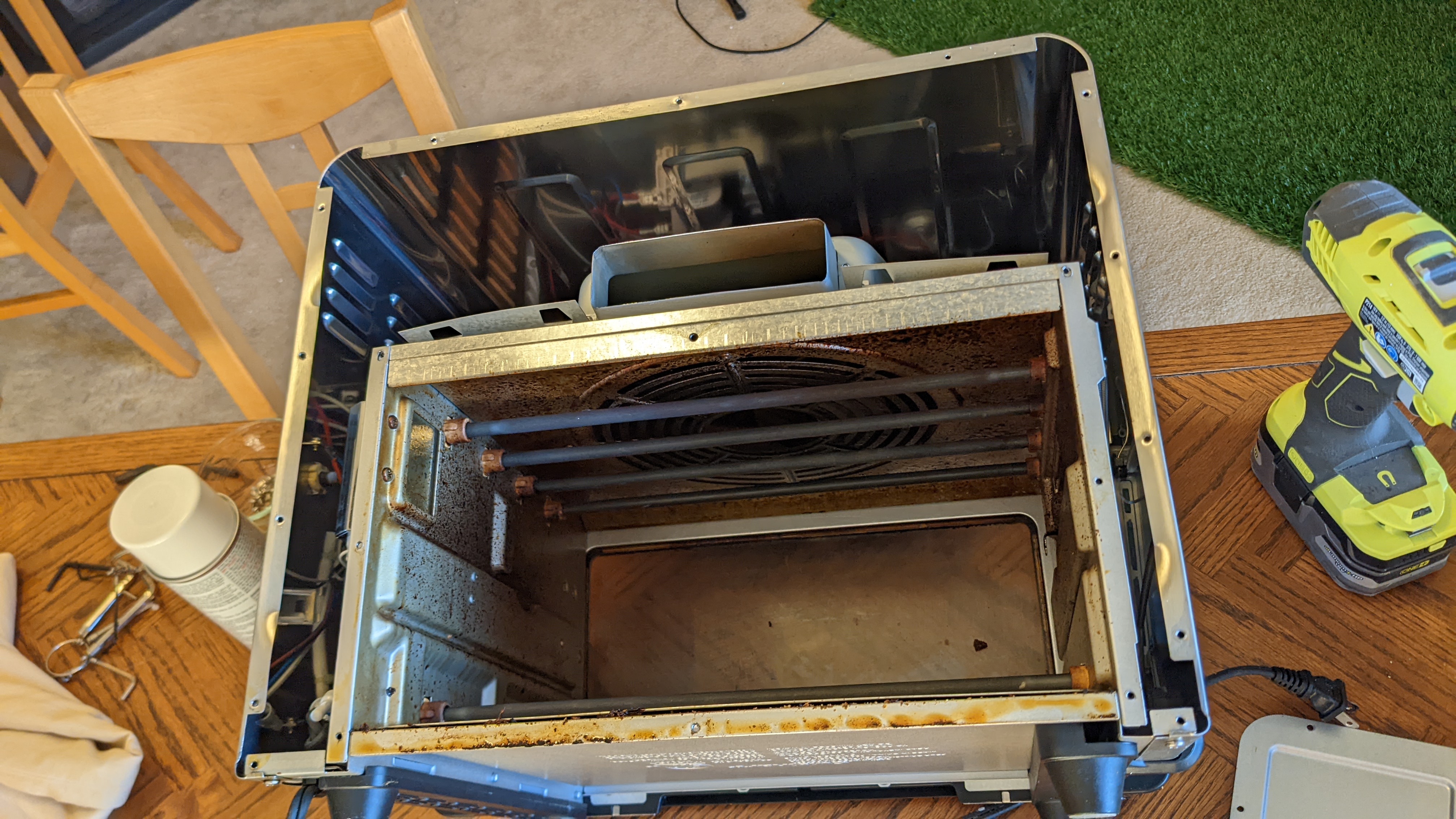 Our toaster was toast. The Cuisinart Toaster Oven Air Fryer TOA-60 died after about 1 year and a half of active use. The function selector had burned out due to arcing. The door switch also showed signs of arcing. Cuisinart cheerfully replaced the unit under warranty, but that left the old stainless steel hulk sitting around. This project rebuilt it using a Raspberry Pi and allows it be controlled from anywhere across the Internet. Feel free to skip the disassembly and discovery in Part 1 and read the new design in Part 2. Click on any picture to expand it.