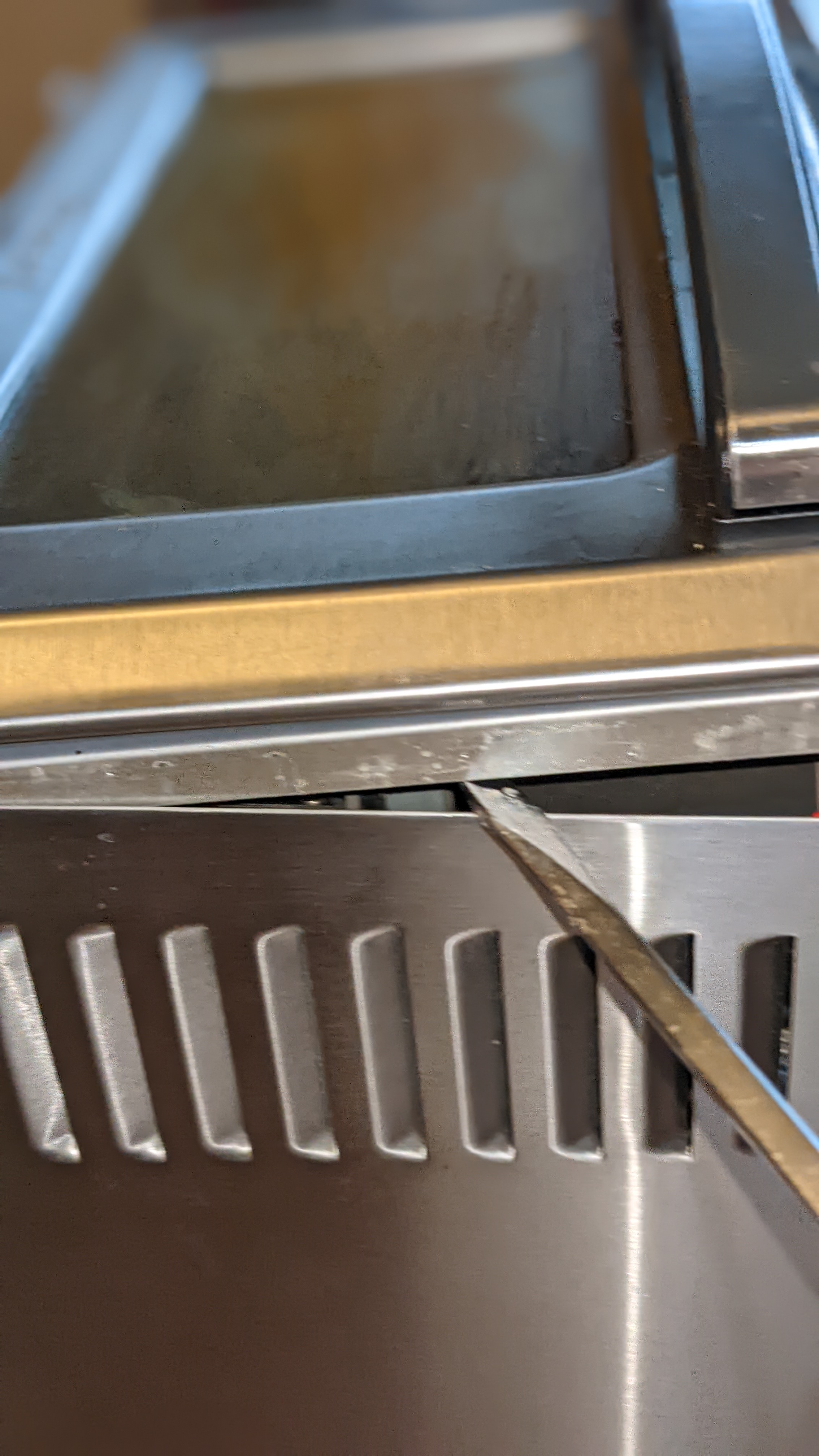6. There are 3 spring clips on each side of the stainless steel cover. They attach the cover to a flange in the front.